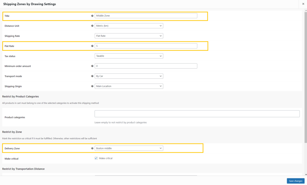 Continue by drawing a second delivery zone (Boston middle) and adding a second delivery method (Middle Zone) with a $5 flat rate and the new “Boston middle” delivery zone as a restriction.